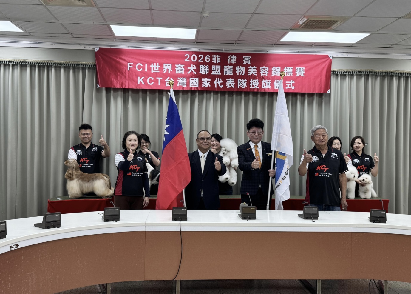 農業部指出,世界畜犬聯盟寵物美容錦標賽由世界畜犬聯盟(Federation Cynologique Internationale, FCI)主辦,本屆共有來自5個國家的優秀選手同場競技。畜犬協會於賽前特別拜會農業部,由動物保護司江文全司長親自授旗,勉勵5位臺灣代表選手全力以赴、為國爭光。本次賽事共分為水獵犬組、貴賓犬組、㹴犬組、其他應剪毛品種犬組及寵物組等5大組別,臺灣代表隊在競爭激烈的比賽中表現卓越,一舉拿下貴賓犬組、其他應剪毛品種犬組及團體總成績冠軍,成績斐然。連續兩屆奪冠,不僅是選手努力的成果,也象徵臺灣寵物產業已具備世界級水準。