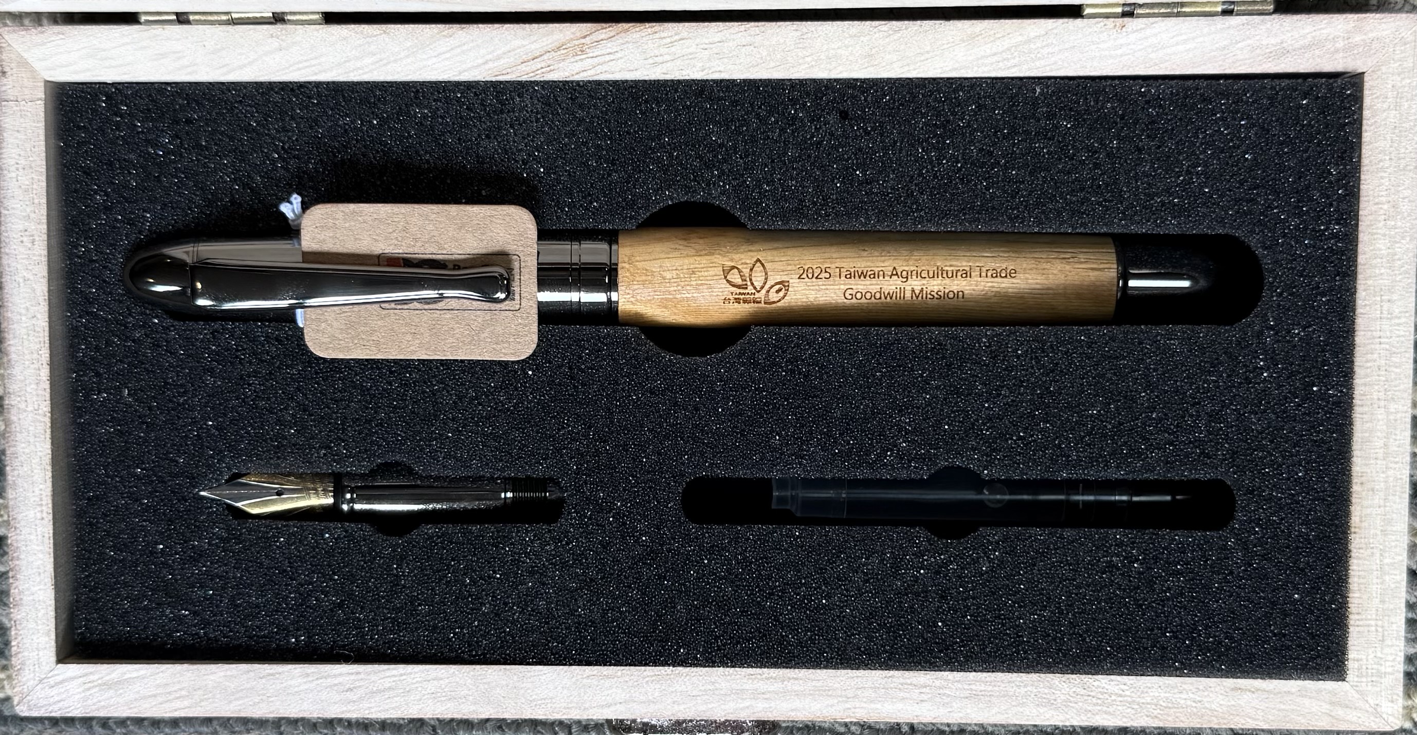 台灣雜糧發展基金會特別訂製20支台灣檜木手工筆,配合精美的木盒包裝,委由同行的台灣植物油製煉工業同業公會洪堯昆理事長,代為贈送給美方的國會議員、州長及農業團體代表人,表達期待透過攜手合作,共創農業貿易典範。