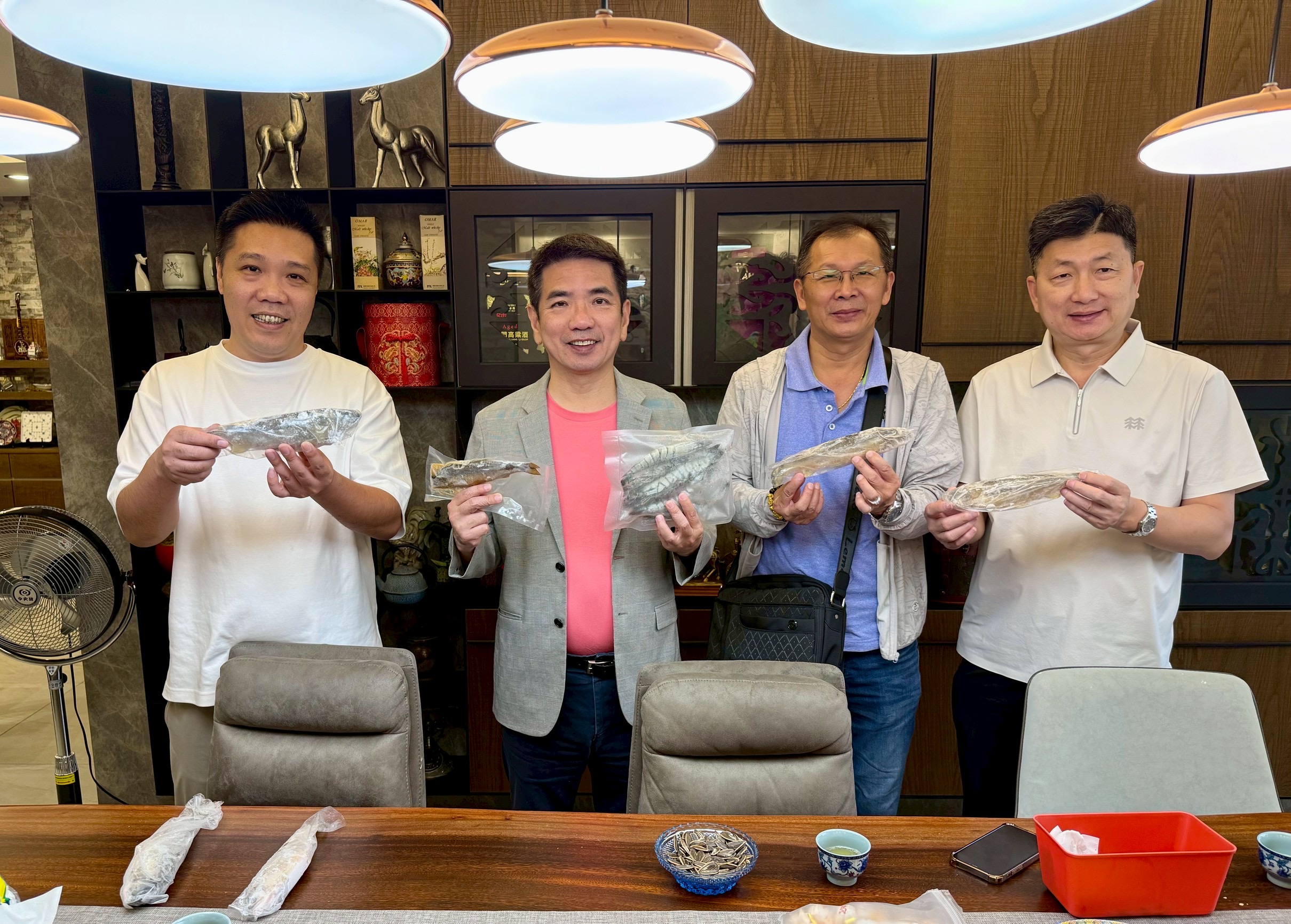 水產事業董事長楊順龍(左一)與雜糧基金會董事長江聰淵等人