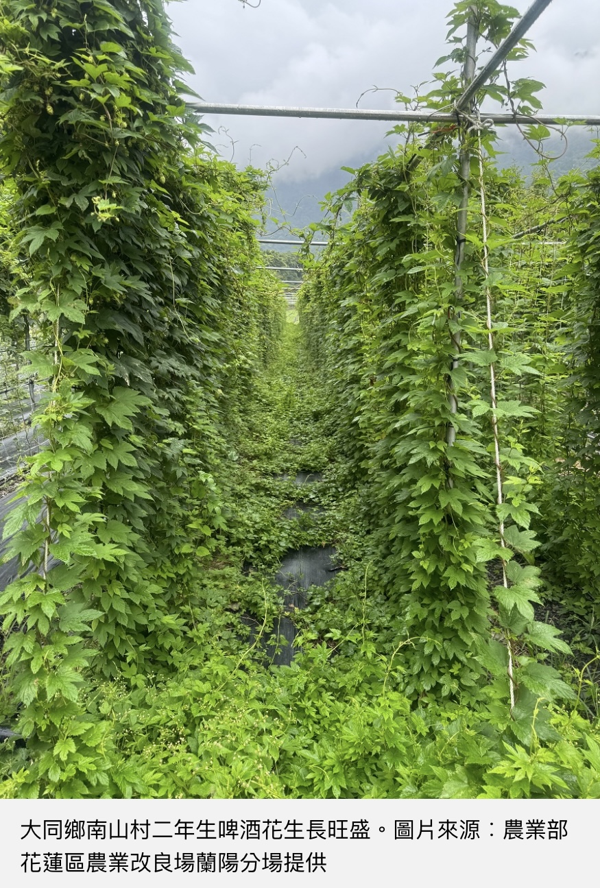 農業部花蓮區農業改良場近年在花蓮高山跟平地成功進行啤酒花有機栽培,2024年進一步在宜蘭縣大同鄉四南地區海拔1100公尺的高冷蔬菜產區試種,發現啤酒花不僅適應當地氣候環境,其生育及開花亦表現良好。研究員向《環境資訊中心》表示,希望與在地精釀啤酒廠商合作,推廣宜蘭啤酒花釀造的啤酒,幫助農民轉型和建立本土化的高經濟價值作物產業鏈。