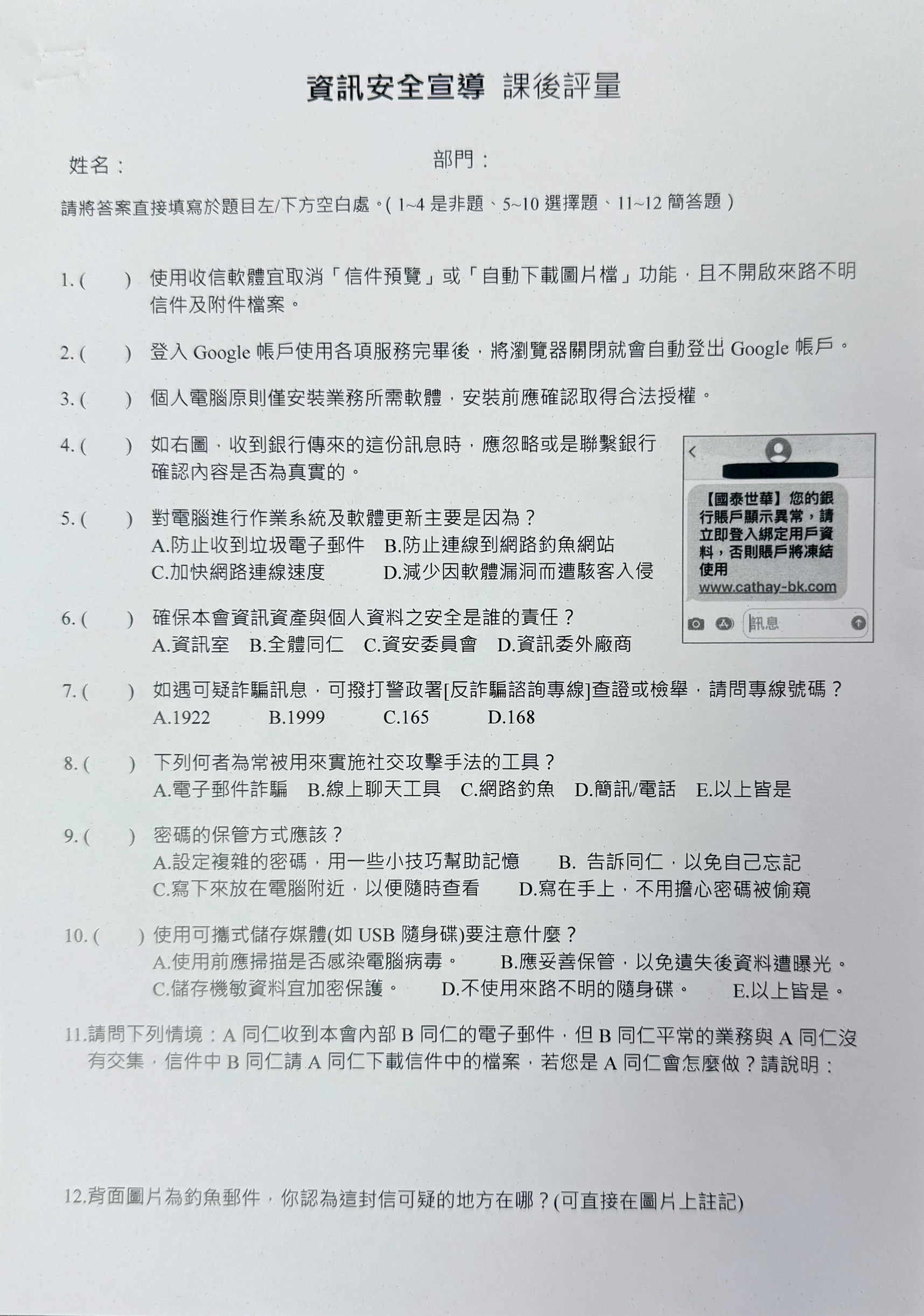 台灣雜糧發展基金會全員參加資訊安全課程 並進行課後評量
