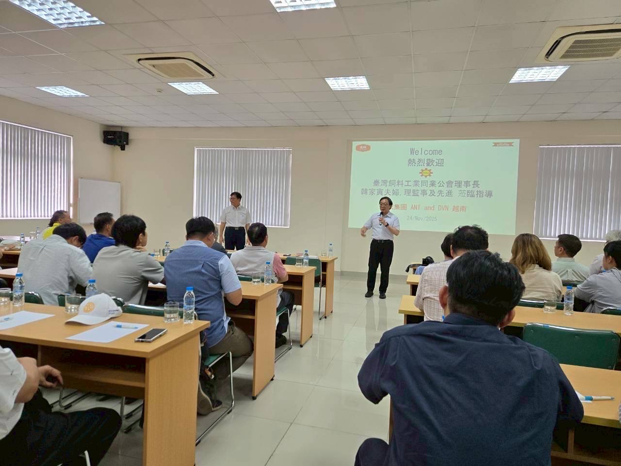 大成國際事業蘇孟治總經理說明目前產業情況,大成2024年畜產越南的市場總量為1,970萬噸(含契約800萬噸),越南目前政治相對穩定,經濟成長快速,政府開使重視人才教育。國際人均飼料:美國635kg、越南208kg、台灣290kg、中國158kg。人均總肉消費:美國100-110kg、越南40-50kg、台灣70-80kg、中國50-60kg。外資飼料企業占55%、集團養豬占50%、集團養蛋雞30%、白肉雞90%契約養殖。