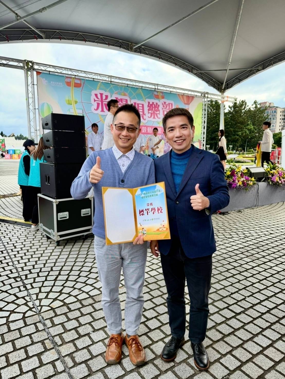 雜糧基金會董事長江聰淵及績優學校育才國小陳志銘校長