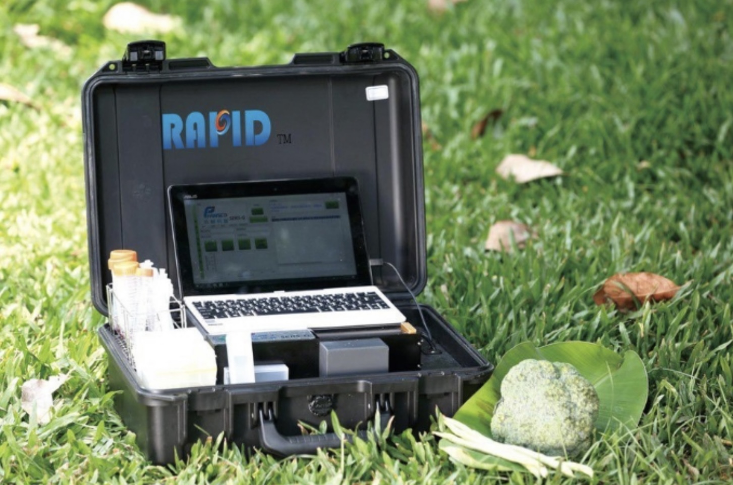 汎鍶科藝光譜科技,行動檢測,可檢測230種農藥,15分鐘即可得到出示定性及半定量報告。即時田間檢驗,採收前預檢,避免農友損失,守護消費者食安的健康。